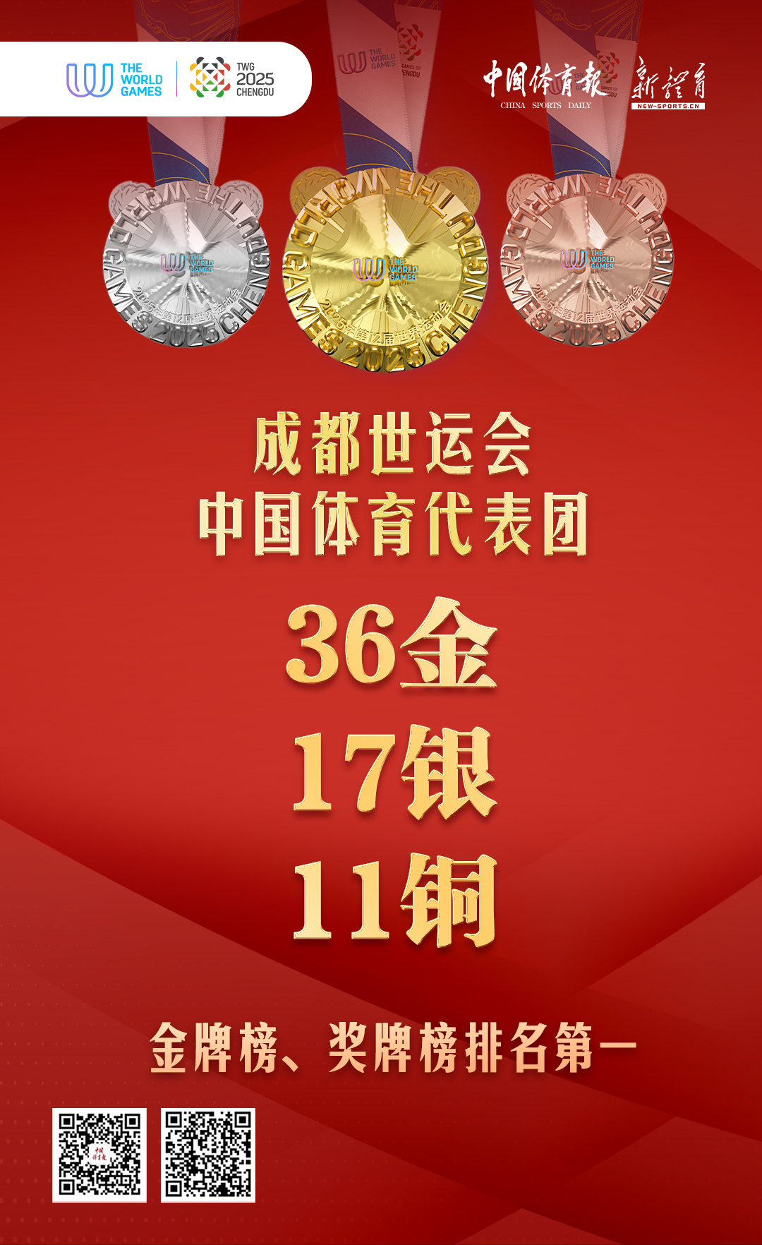 8月17日,成王尘世运会中国体育代表团以36金17银11铜收官,位居金牌、奖牌榜首位!奖牌一览>>