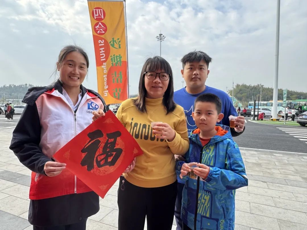 归乡搭客拿着“对子送福”等春运“大礼包”说说念:“简直太暄和了,谢谢!”