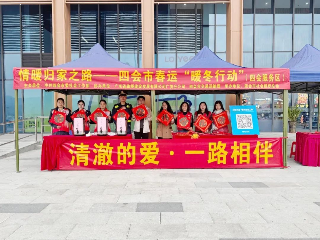 灵蛇纳福辞旧岁,春运启幕盼团圆。新春佳节将至,为进展“奉献、友爱、互助、跳动”的志愿精神,为返乡的游子增添一份暖意,为归乡的行囊分摊一份分量,让“暖冬步履”化作星光,点亮漫漫归家路,由四会市委社会职责部主持,四会市交通运载局、广东省路桥建造发展有限公司广贺分公司协办,四会市社会组织总会经办的情暖归家之路——四会市春运“暖冬步履”(四会功绩区)于1月23日在广贺高速四会功绩区开展。
