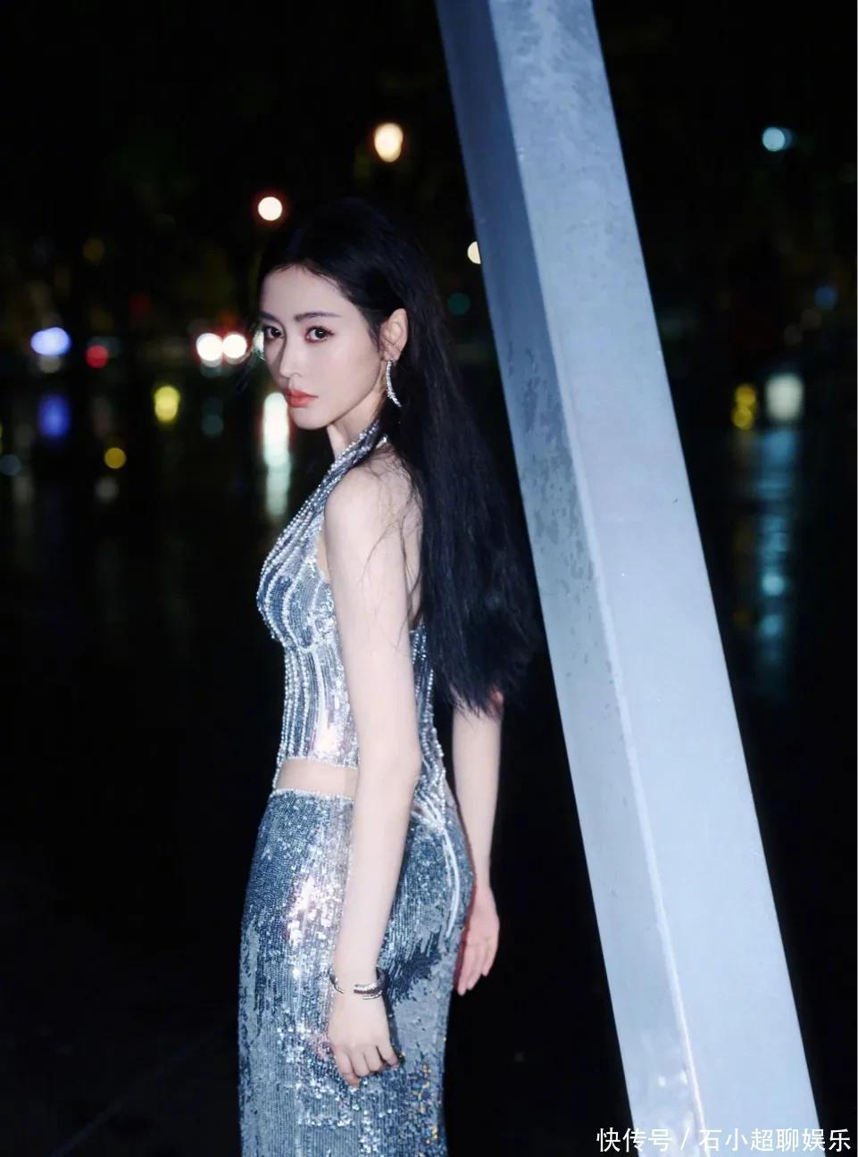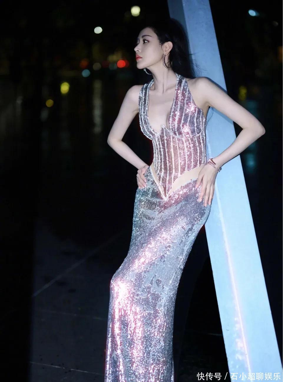 她裙子上的亮片不是那种呆板的闪,是跟着她一动,就像星星碎在了裙子上,左摇右晃的,灵得很。