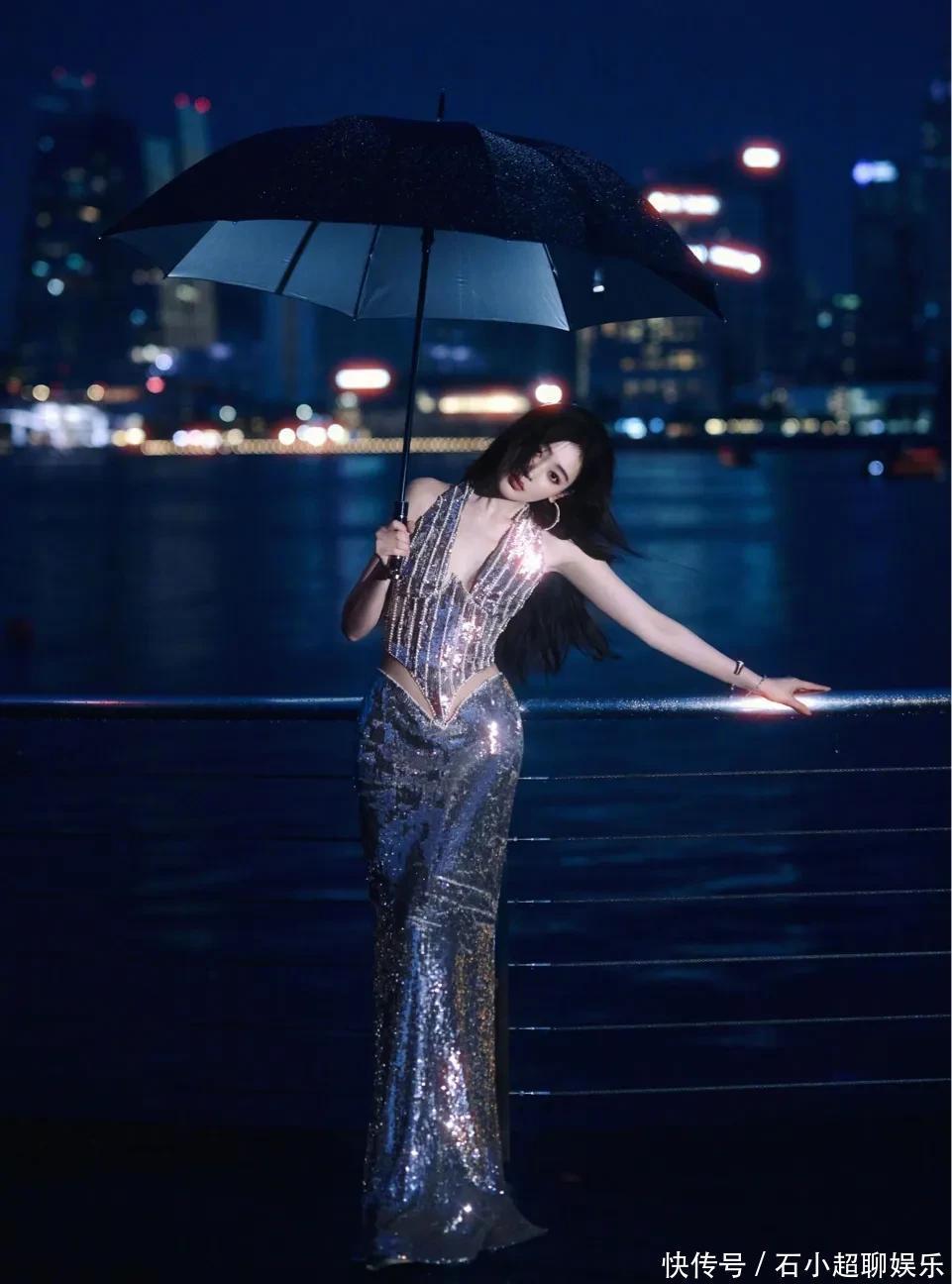 谁懂啊,那种湿淋淋的夜晚,她穿一条银闪闪的亮片鱼尾裙,往江边那么一站——绝了!