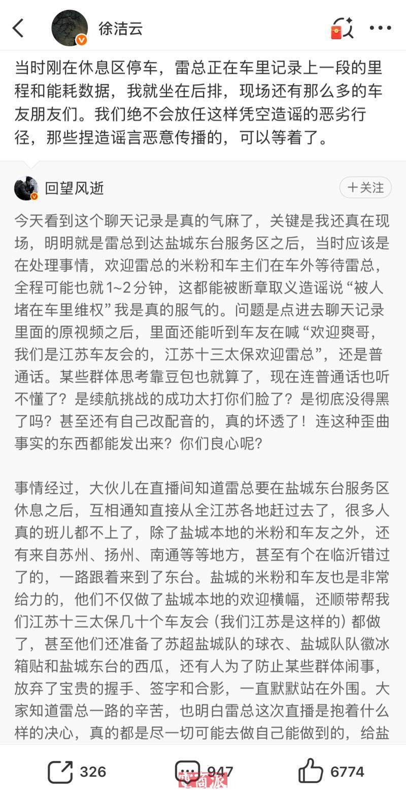 小米公关总司理徐洁云转发别称博主的微博,涌现:其时刚在休息区泊车,雷总正在车里纪录上一段的里程和能耗数据,我就坐在后排,现场还有那么多的车友一又友们。咱们毫不会放任这样虚拟攻讦的恶劣行动,那些持攻讦言坏心传播的,不错等着了。